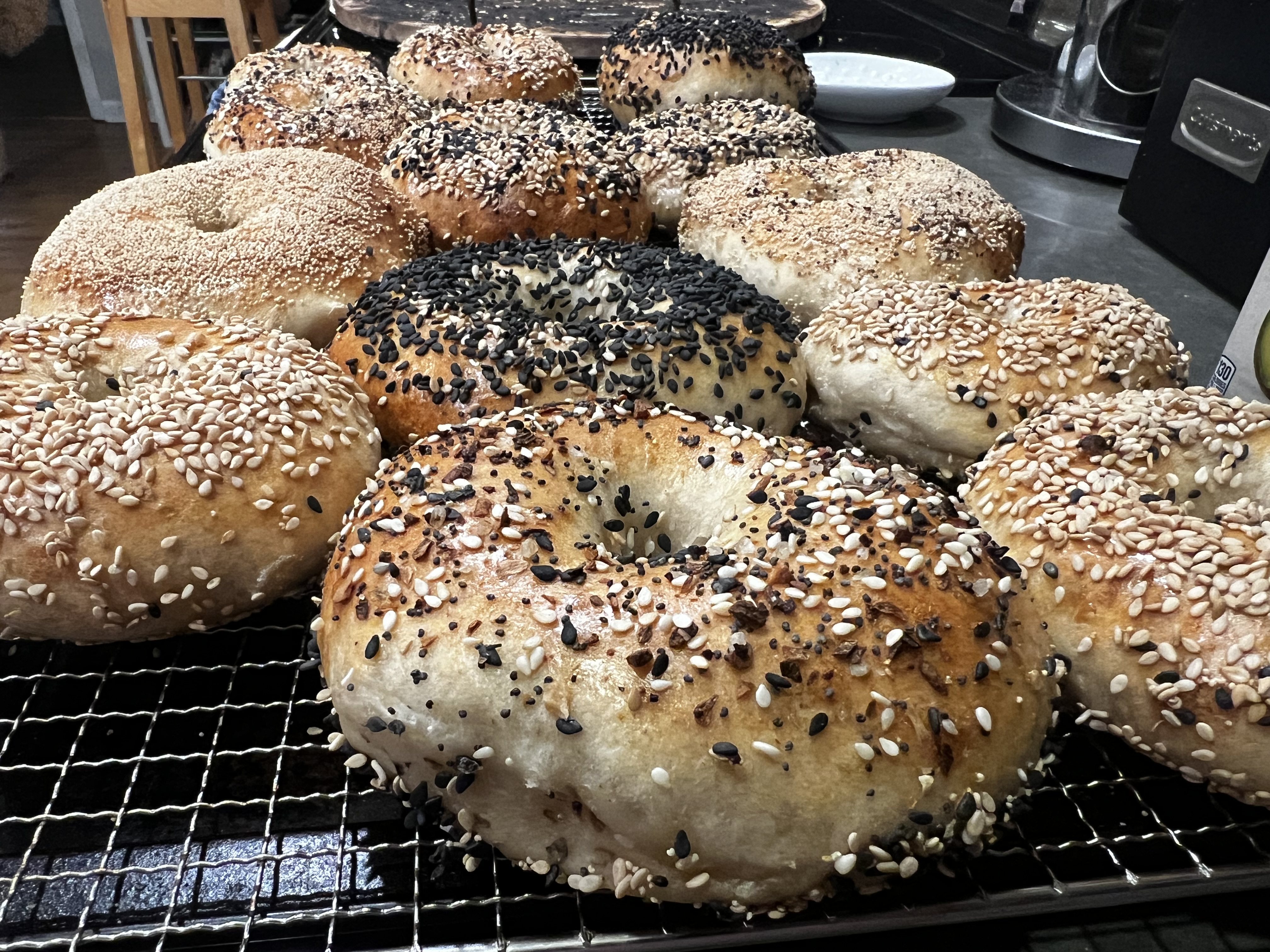 To create the balance of crunch & chewy, our sourdough bagels require a bulk rise & cold ferment (about 48hrs)